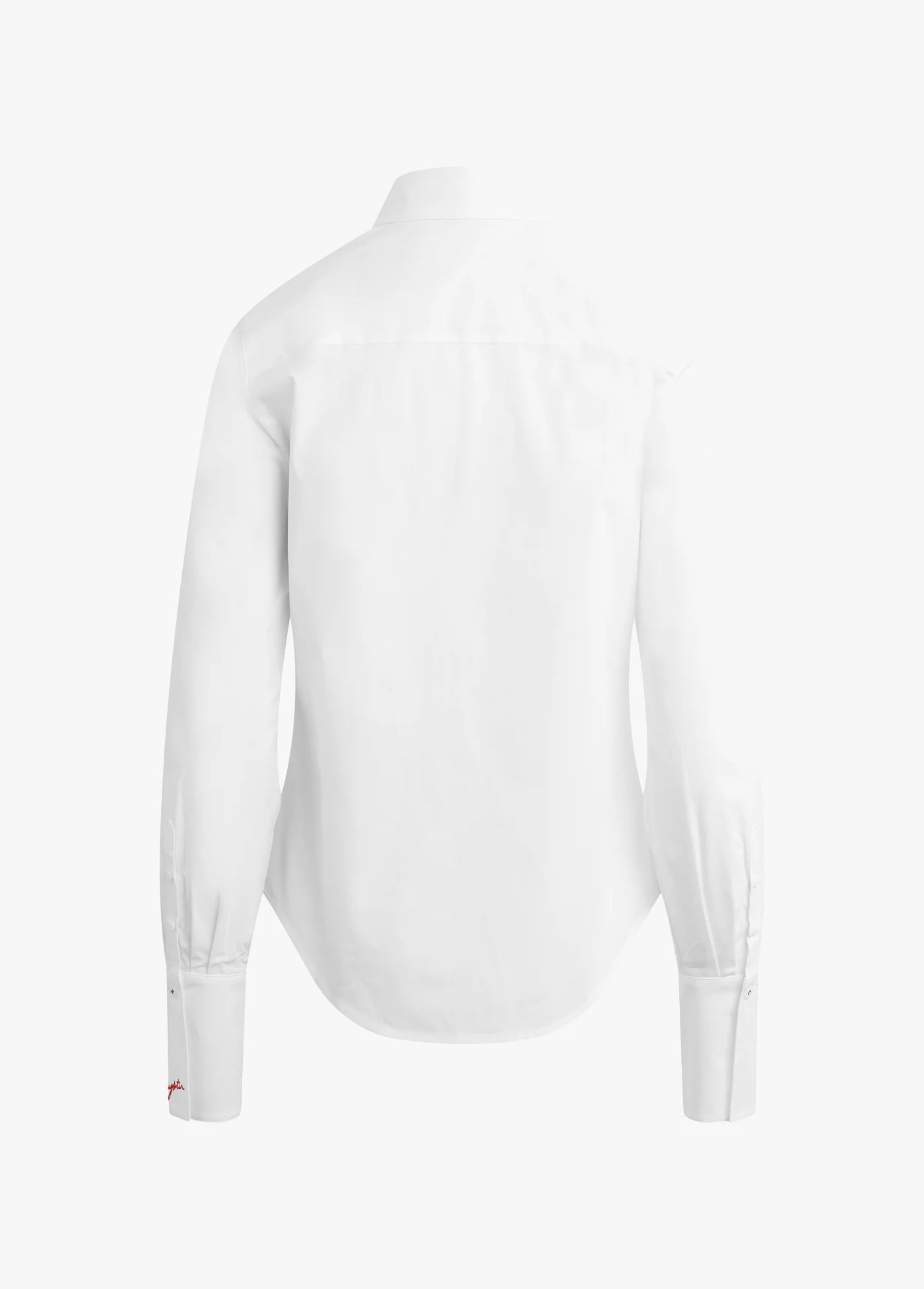 A crisp, cotton-poplin shirt with all the classic button-down details--pointed collar with hidden front placket, wide cuff details and a timeless slim fit. Our favorite part is the pop contrast of Favorite Daughter red embroidery.